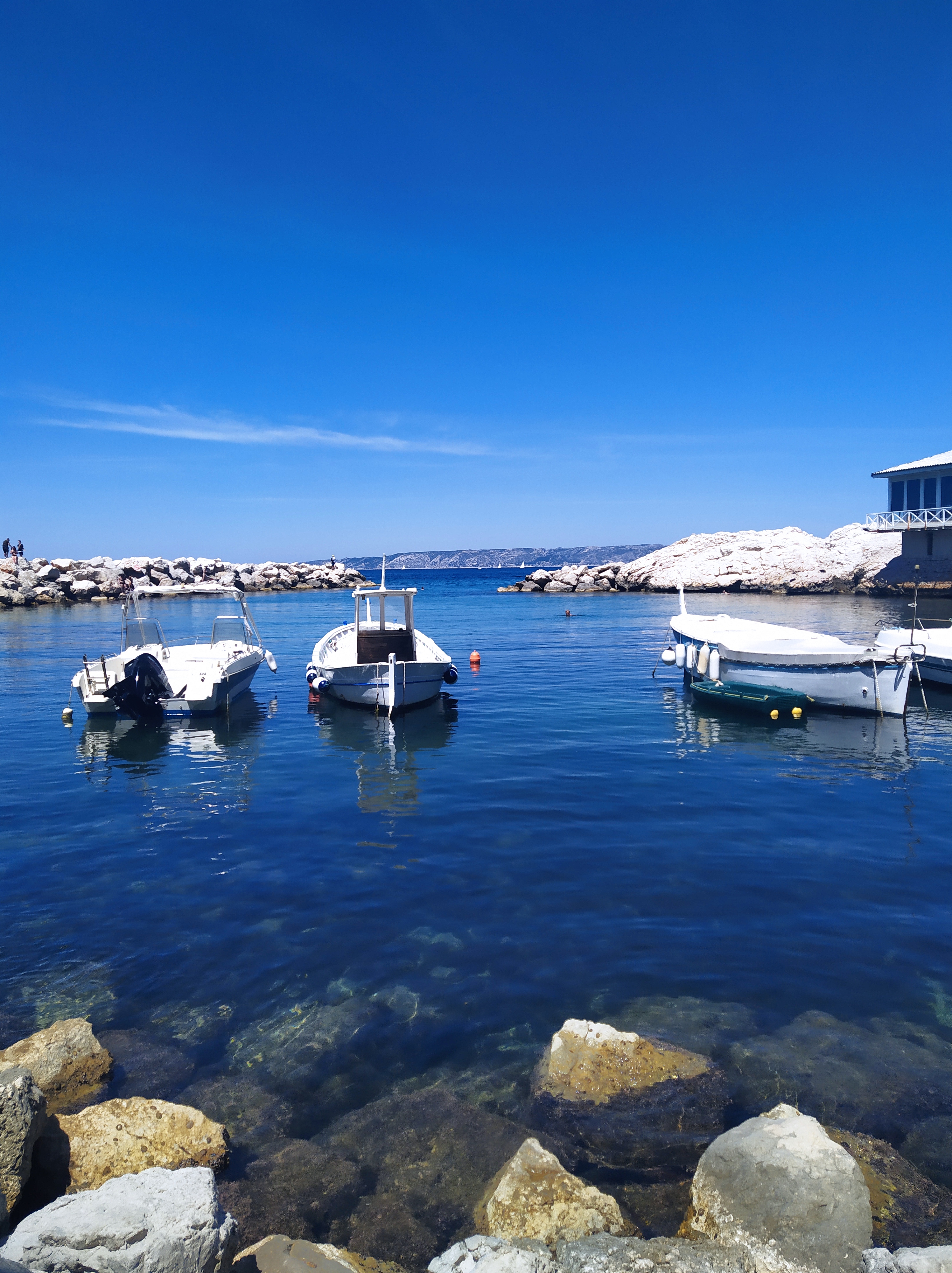 Situé à l’extrémité sud de la ville, au niveau de la corniche Kennedy, ce lieu semble sortir de l’eau, à la manière d’un mirage en plein désert, tant la quiétude de cette enclave tranche avec l’habituel tumulte de la métropole. Nous ne sommes qu’à 20 minutes, à peine, à pieds du Vieux-port marseillais et pourtant, tout dans cet endroit semble nous indiquer que nous avons changé de temps et d’espace. Le ronronnement continuel des voitures a laissé place au respire des vagues.